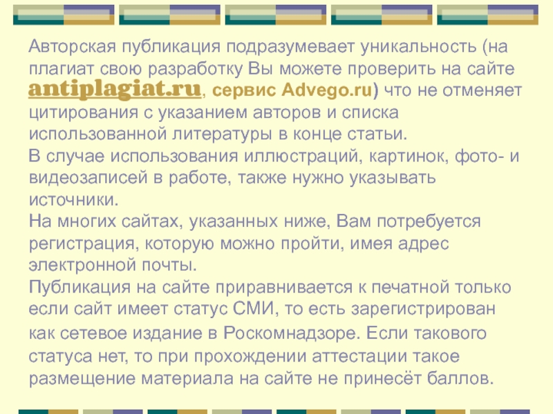 Слайд 3Авторская публикация подразумевает уникальность (на плагиат свою разработку Вы можете проверить