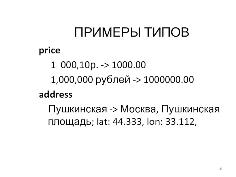 Слайд 10ПРИМЕРЫ ТИПОВ