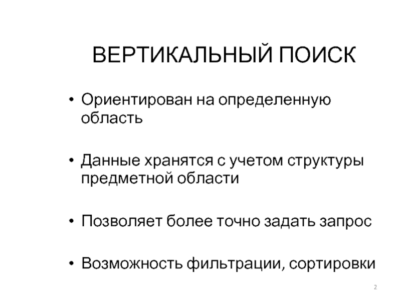 Слайд 2ВЕРТИКАЛЬНЫЙ ПОИСК