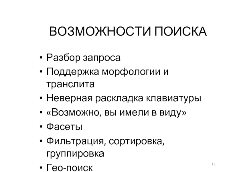 Слайд 13ВОЗМОЖНОСТИ ПОИСКА