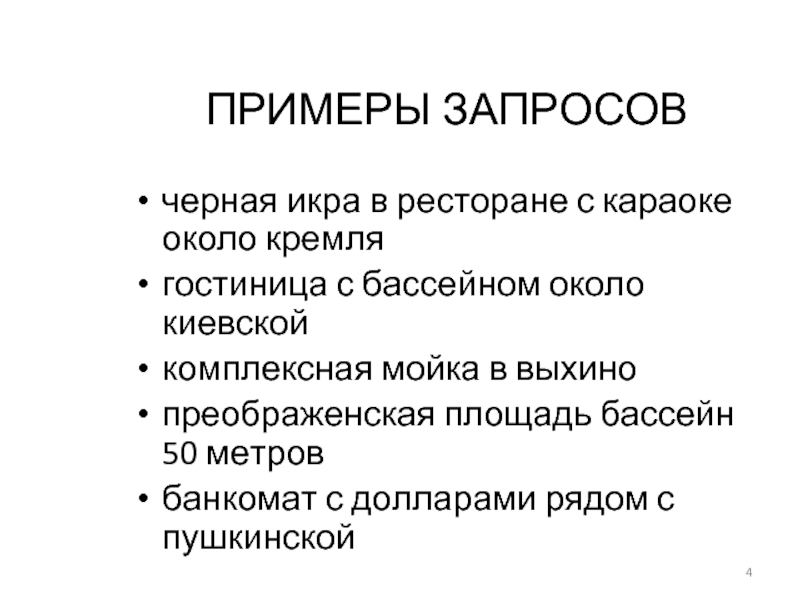Слайд 4ПРИМЕРЫ ЗАПРОСОВ