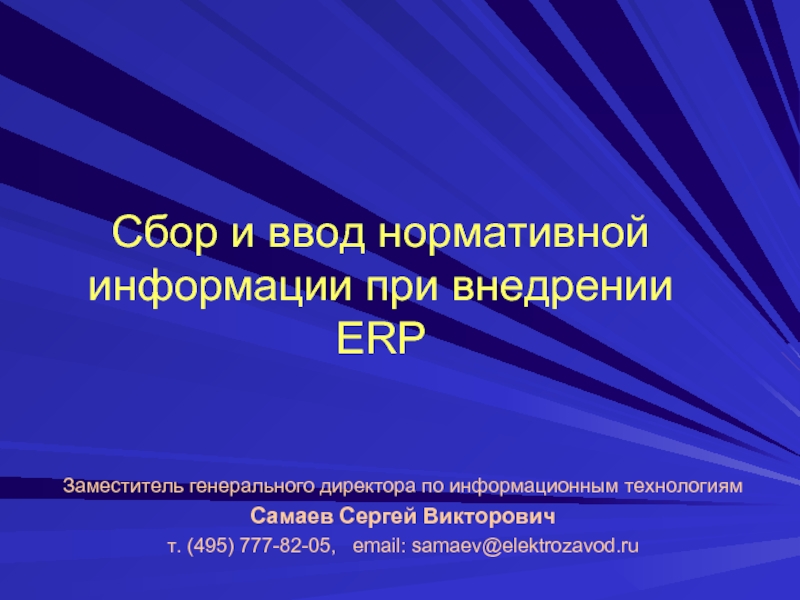 Слайд 1Сбор и ввод нормативной информации при внедрении ERP