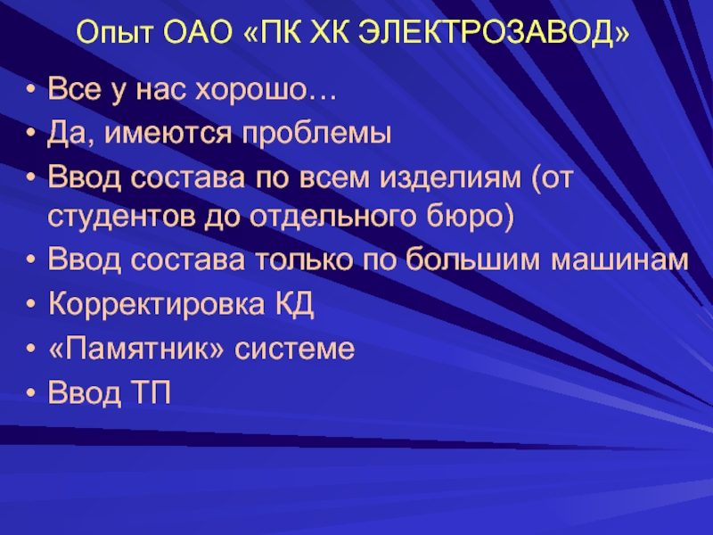 Слайд 4Опыт ОАО «ПК ХК ЭЛЕКТРОЗАВОД»