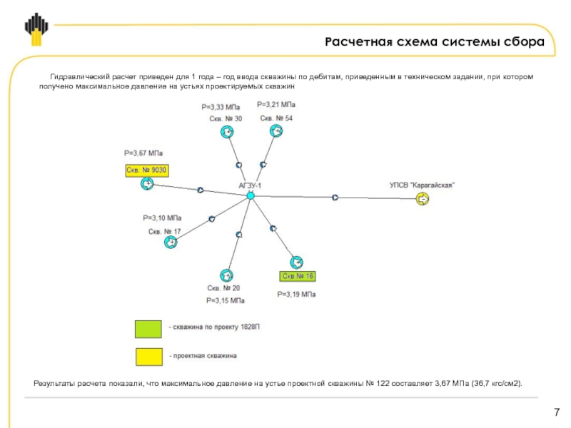 Результаты расчета показали, что максимальное давление на устьях проектных скважин составляет 3,05 МПа (30,5 кгс/см2).