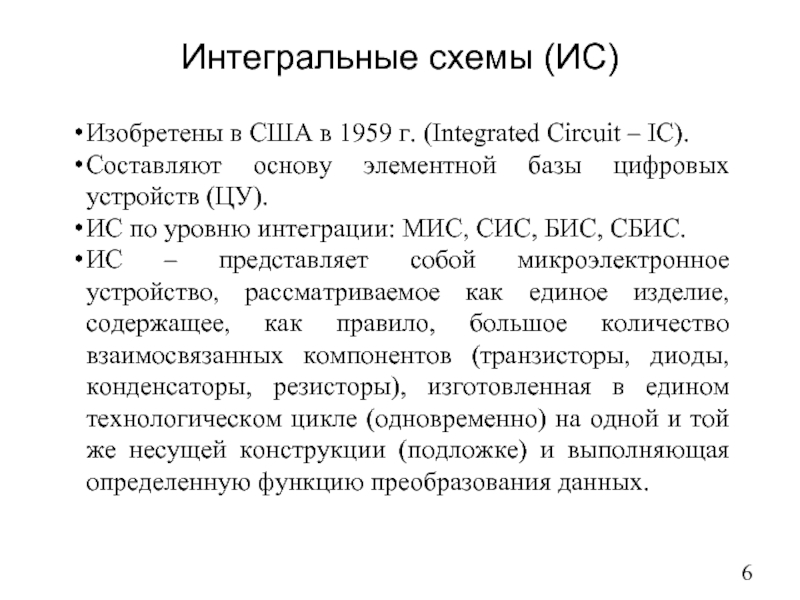 Слайд 6Интегральные схемы (ИС)