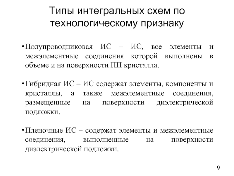 Слайд 9Типы интегральных схем по технологическому признаку