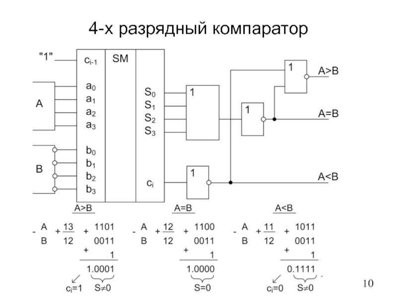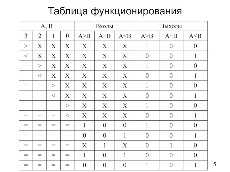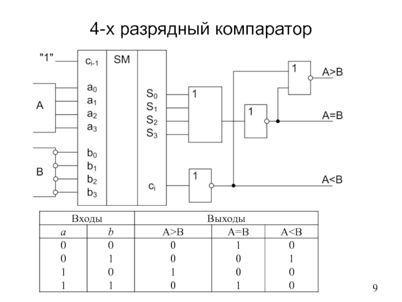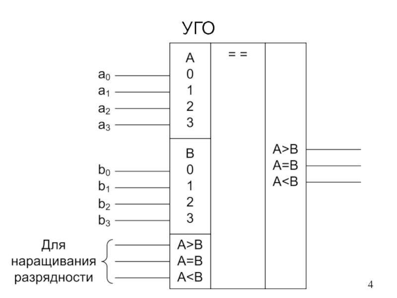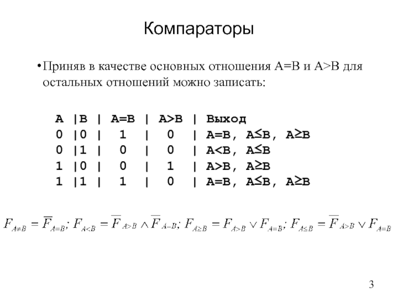 A |B | A=B | A>B | Выход