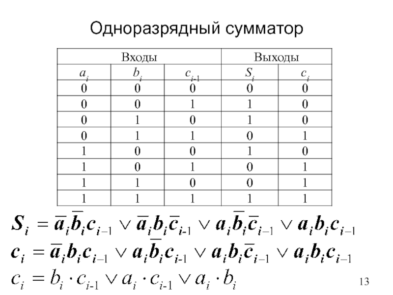 1 |1 | 1 | 0 | A=B, A≤B, A≥B