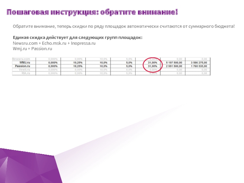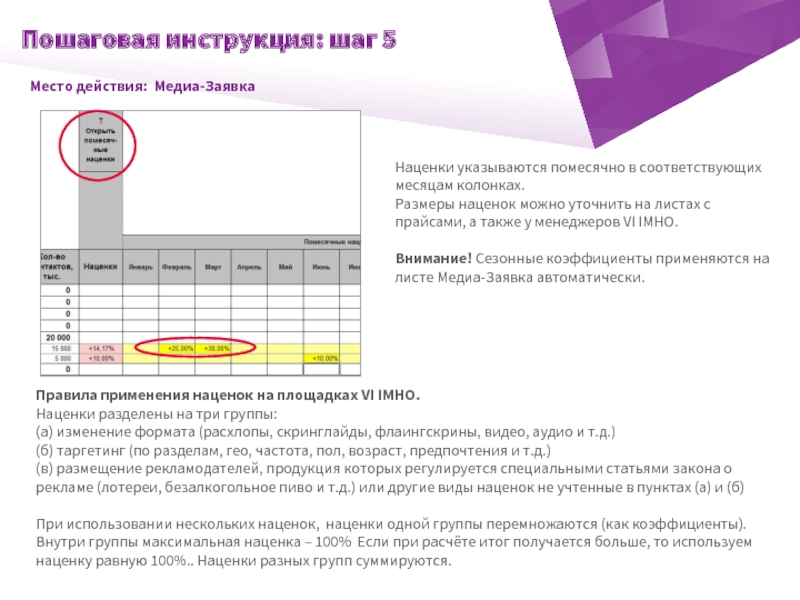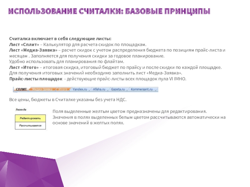 Лист «Медиа-Заявка» – расчет скидок с учетом распределения бюджета по позициям прайс-листа и месяцам . Заполняется для получения скидки за годовое планирование.