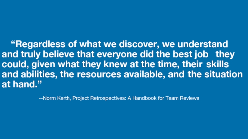 --Norm Kerth, Project Retrospectives: A Handbook for Team Reviews