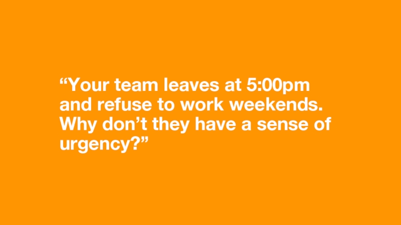 Слайд 62“Your team leaves at 5:00pm and refuse to work weekends. Why
