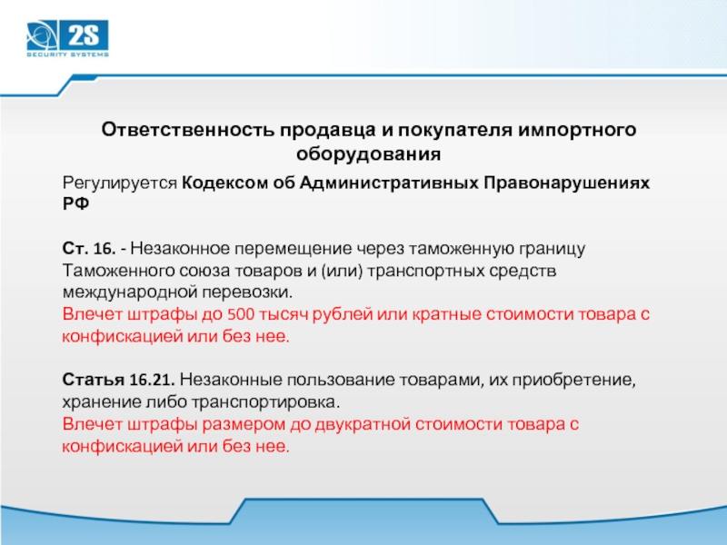 Влечет штрафы размером до двукратной стоимости товара с конфискацией или без нее.