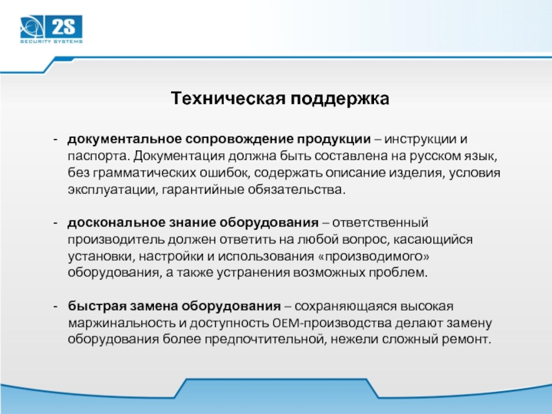 документальное сопровождение продукции – инструкции и паспорта. Документация должна быть