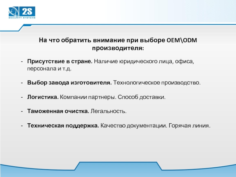 Слайд 6На что обратить внимание при выборе OEM\ODM производителя: