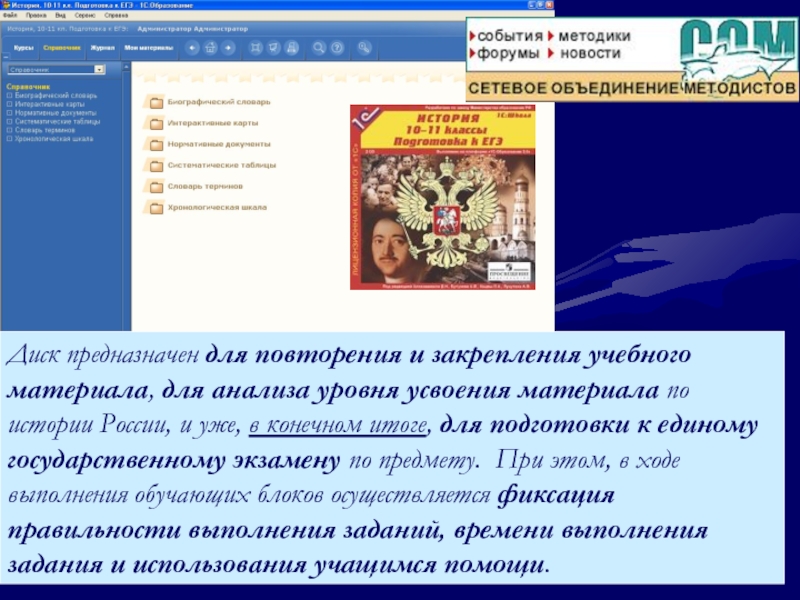 Слайд 25Диск предназначен для повторения и закрепления учебного материала, для анализа уровня