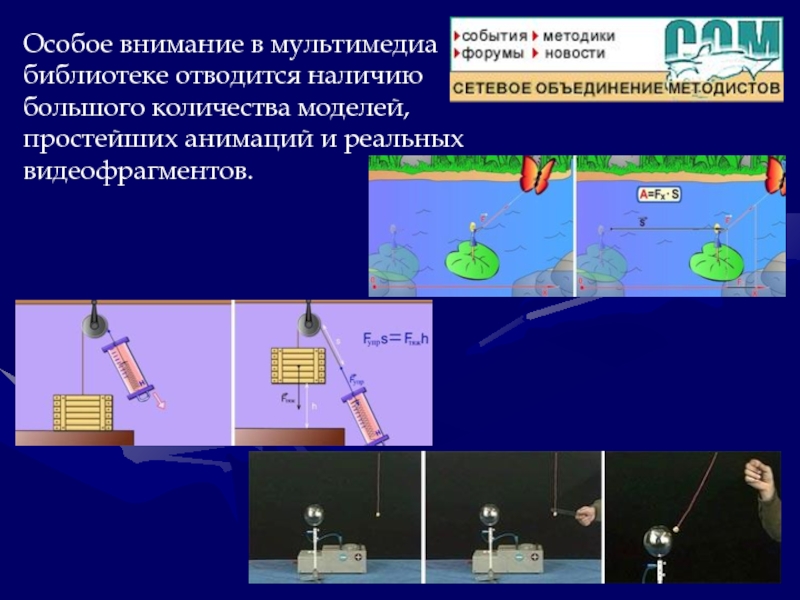 Слайд 22Особое внимание в мультимедиа библиотеке отводится наличию большого количества моделей, простейших