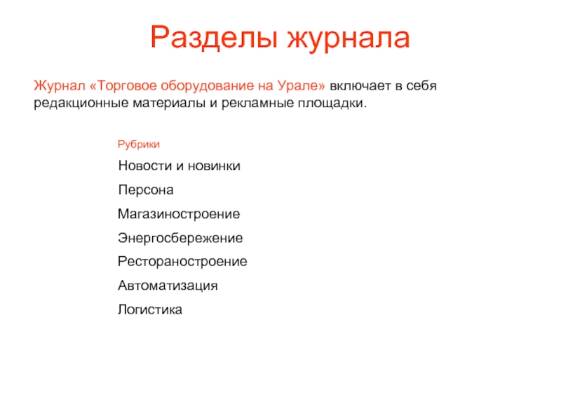 Журнал «Торговое оборудование на Урале» включает в себя
