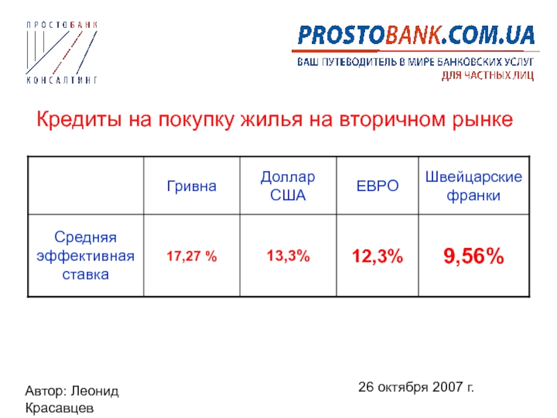 Кредиты на покупку жилья на вторичном