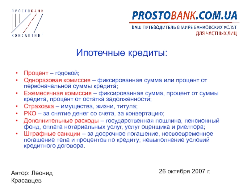 – фиксированная сумма или процент от первоначальной суммы кредита;