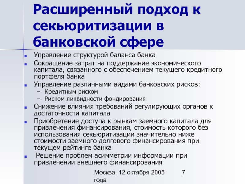Создание программ выпуска ценных бумаг, обеспеченных активами, предоставляет банкам возможности по оперативному управлению кредитным риском