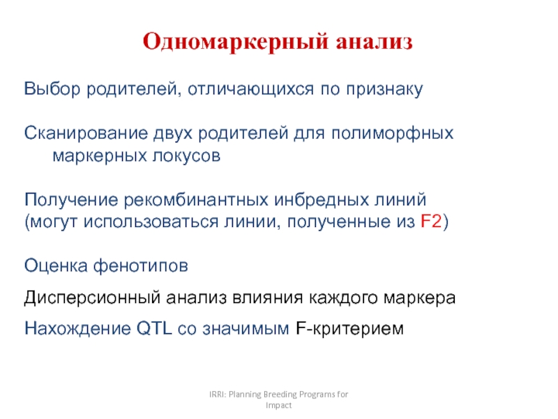 Стратегия картированияQTL: одномаркерный анализ