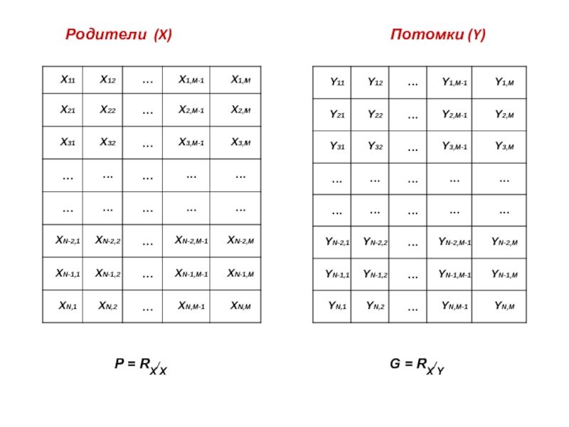 G – матрица коэффициентов корреляции между родителями и потомками