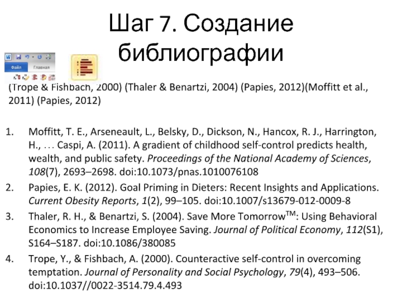 Слайд 29Шаг 7. Создание библиографии