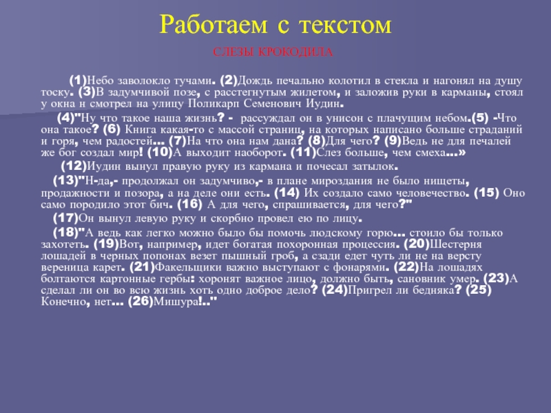 в и е рассказа (что означает фразеологизм крокодиловы слёзы? Случайно или намеренно Ал.П.Чехов видоизменил его на слёзы крокодила?)