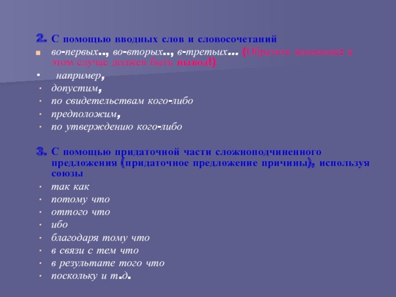 метод подстановки слов поэтому, значит, следовательно.