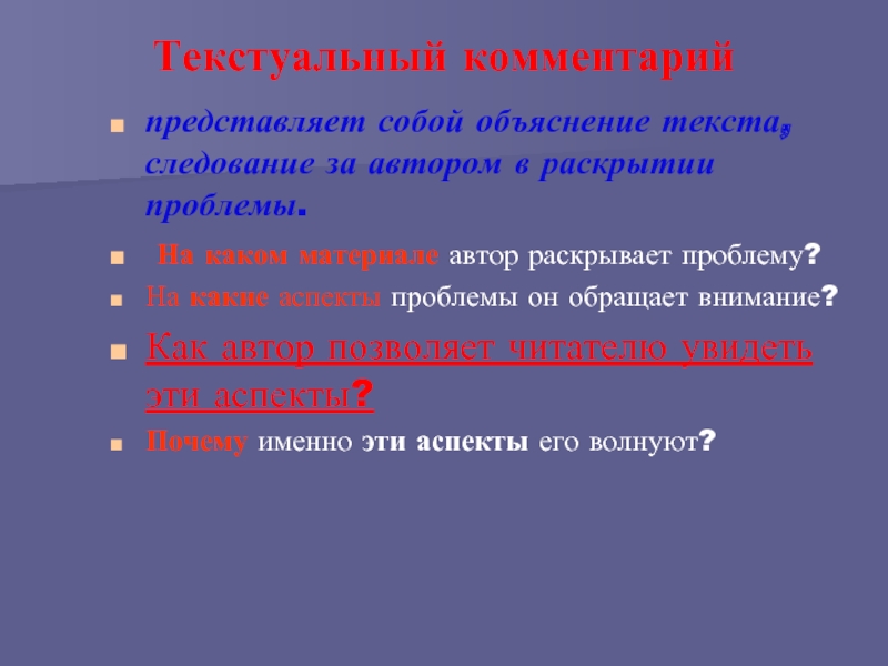 Слайд 17Текстуальный комментарий