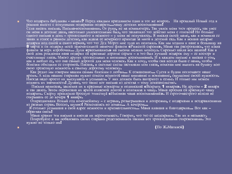 Слайд 11Автор помогает читателю понять причины того, почему бабушка стала для повествовательницы