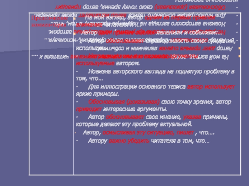 ∙ Обосновывая (доказывая) свою точку зрения, автор приводит интересные аргументы.