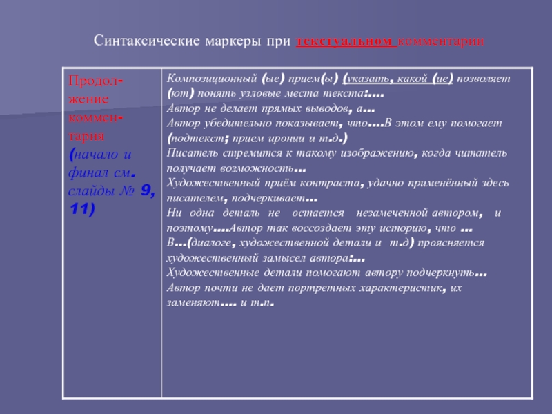 Слайд 13Синтаксические маркеры к комментарию