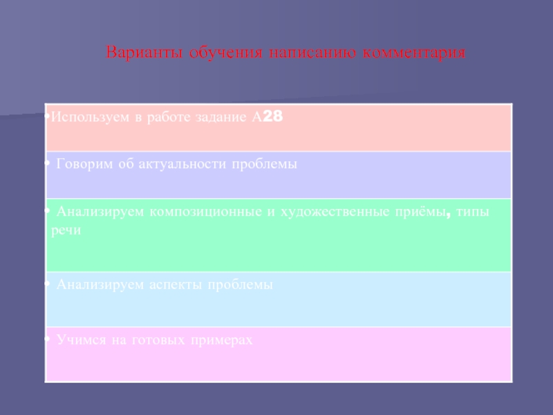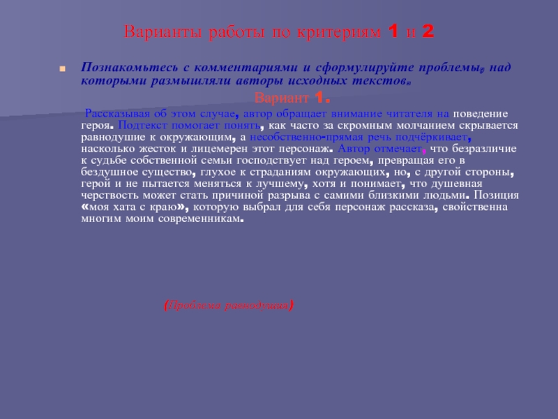 Образцы работы над комментарием Вариант 4: анализируем аспекты проблемы