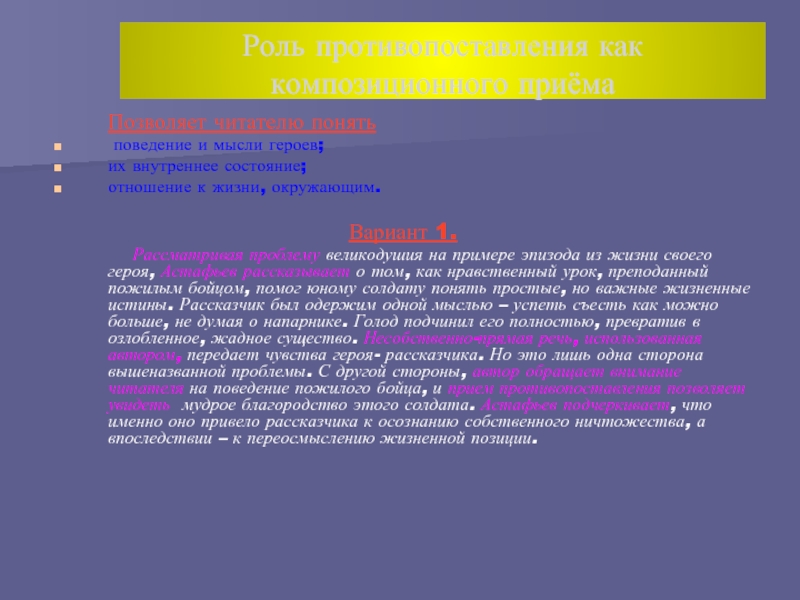 того дня, автор дает возможность увидеть узловые места текста, где затрагиваются особо важные для писателя нравственные вопросы.