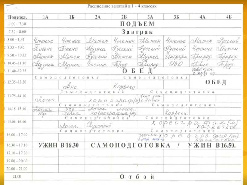 Ответив на эти вопросы, мы смогли составить расписание работы блока дополнительного образования, увязав его с расписанием основных занятий.