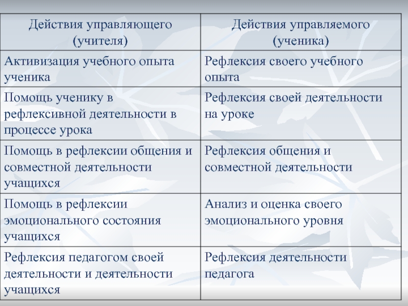 действий, учебно-познавательного диалога, сопоставления результата и цели, самооценки, самоконтроля, саморазвития, корректировки решений.