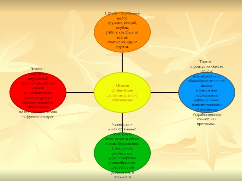 Слайд 20Органичное сочетание в учебно-воспитательных комплексах основного образования с многопрофильным дополнительным создает