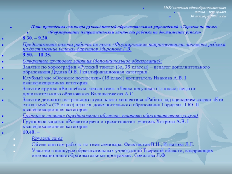 Представление опыта работы по теме «Формирование направленности личности ребенка на достижение успеха» директор Миронова Г.В.