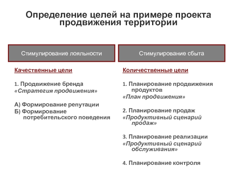 Определение целей на примере проекта продвижения территории