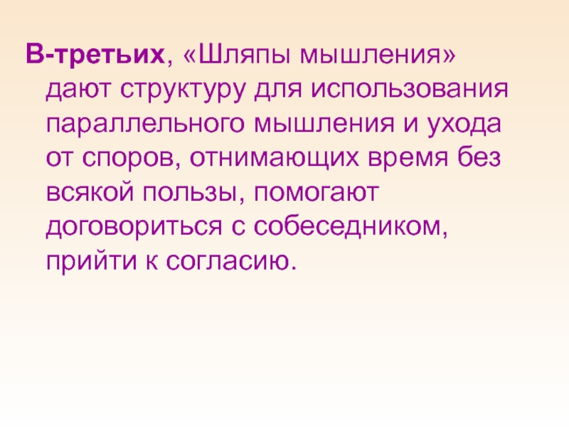 Слайд 11В-третьих, «Шляпы мышления» дают структуру для использования параллельного мышления и ухода