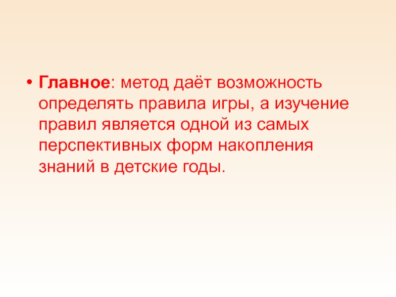 Главное: метод даёт возможность определять правила игры, а изучение правил является