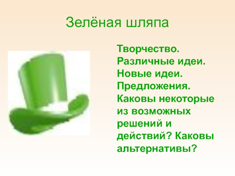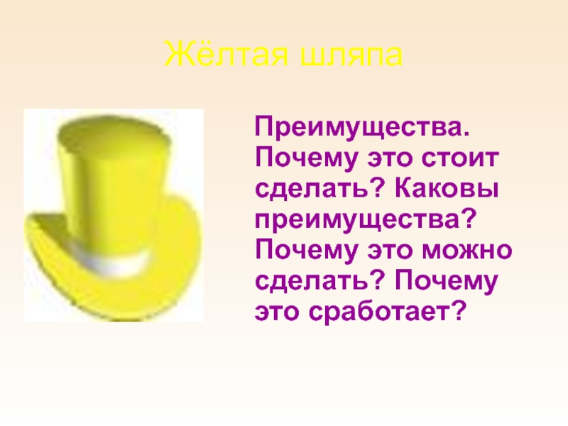 поэтому, меняя шляпу, мы «дирижируем оркестром своих мыслей», придаём им нужное направление;