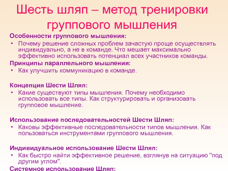 Слайд 8Шесть шляп – метод тренировки группового мышления