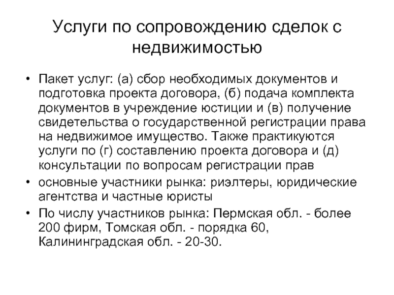 Слайд 12Услуги по сопровождению сделок с недвижимостью