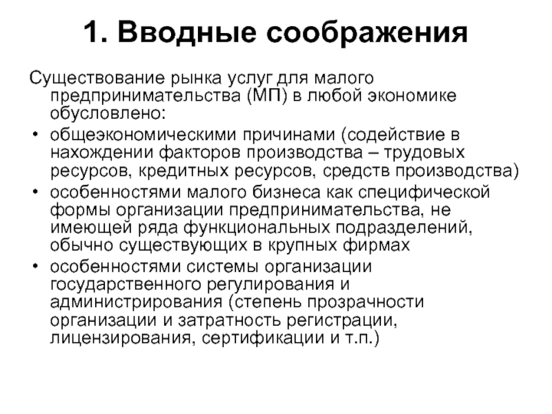 Существование рынка услуг для малого предпринимательства (МП) в любой
