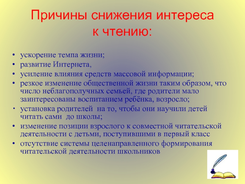 отсутствие системы целенаправленного формирования читательской деятельности школьников