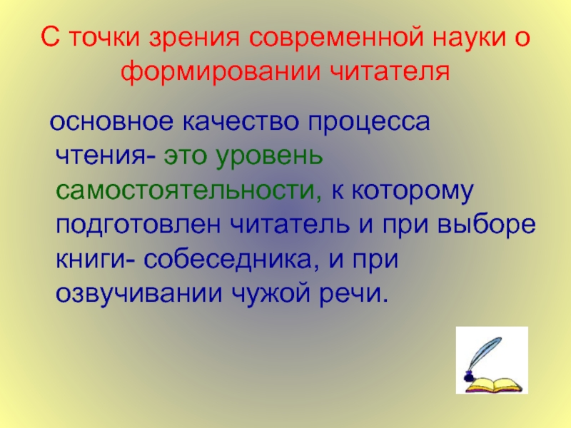 ( квалифицированный читатель – это ребёнок или взрослый, который обладает читательской самостоятельностью, то есть, умеет, привык видеть в любой книге собеседника );