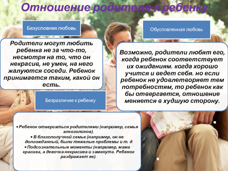 3) Система межличностных отношений в семье (признание возможности и даже целесообразности независимого существования взрослых от детей, тактикой “невмешательства”)