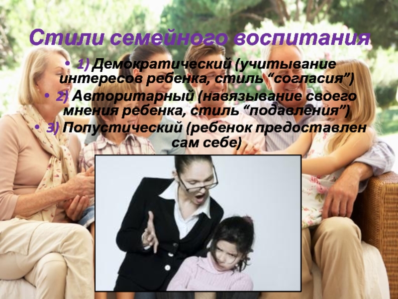 (навязывание своего мнения ребенка, стиль “подавления”)